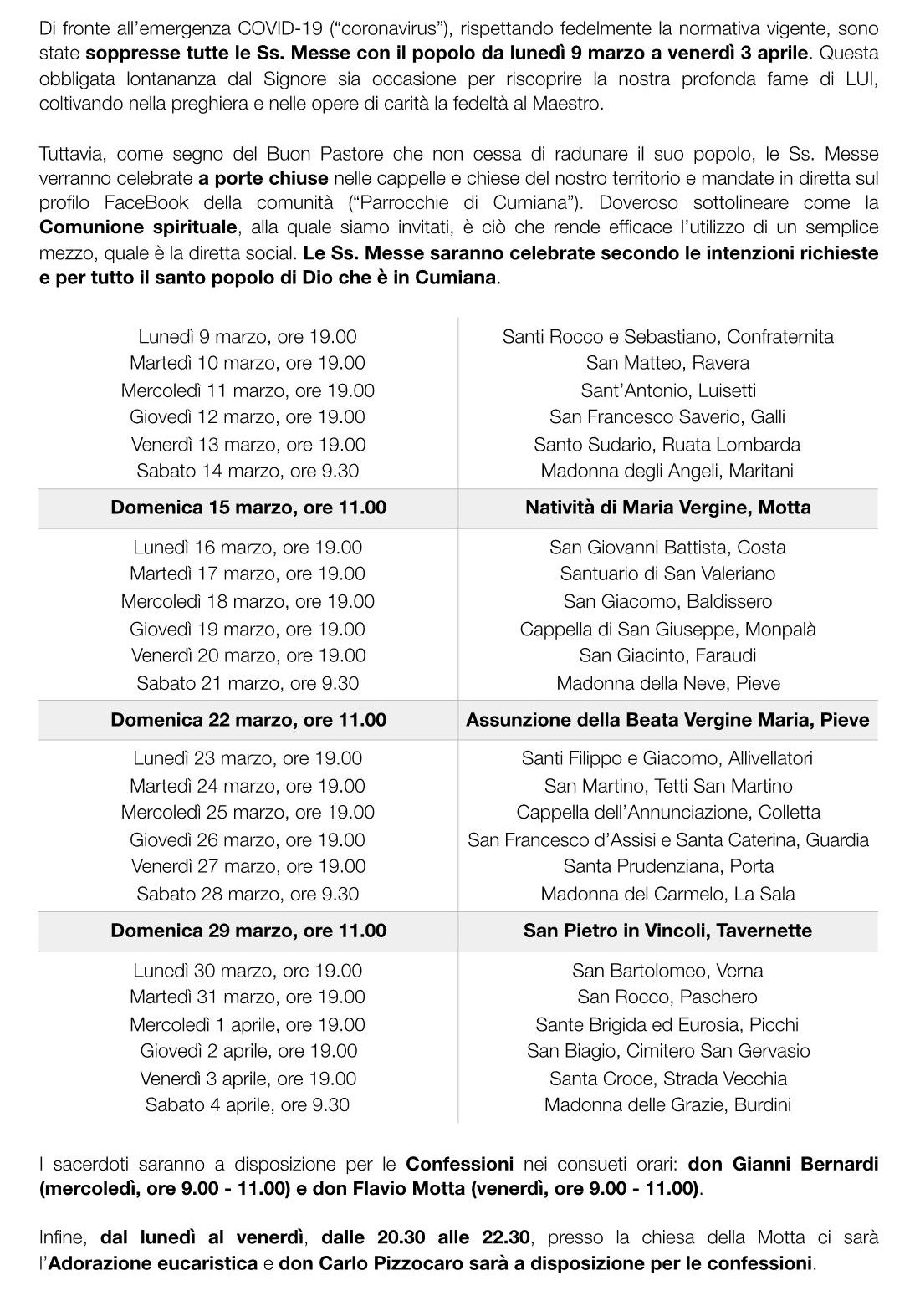 V Domenica di Quaresima – 29 Marzo ore 11.00: Celebrazione della Santa Messa, in diretta dalla Parrocchia S. Maria della Motta in Cumiana