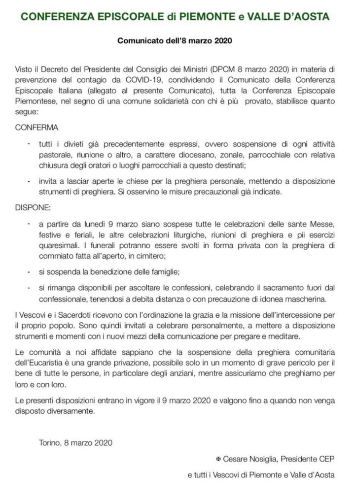 La CEP (Conferenza Episcopale Piemontese) ha emanato il relativo decreto attuativo.